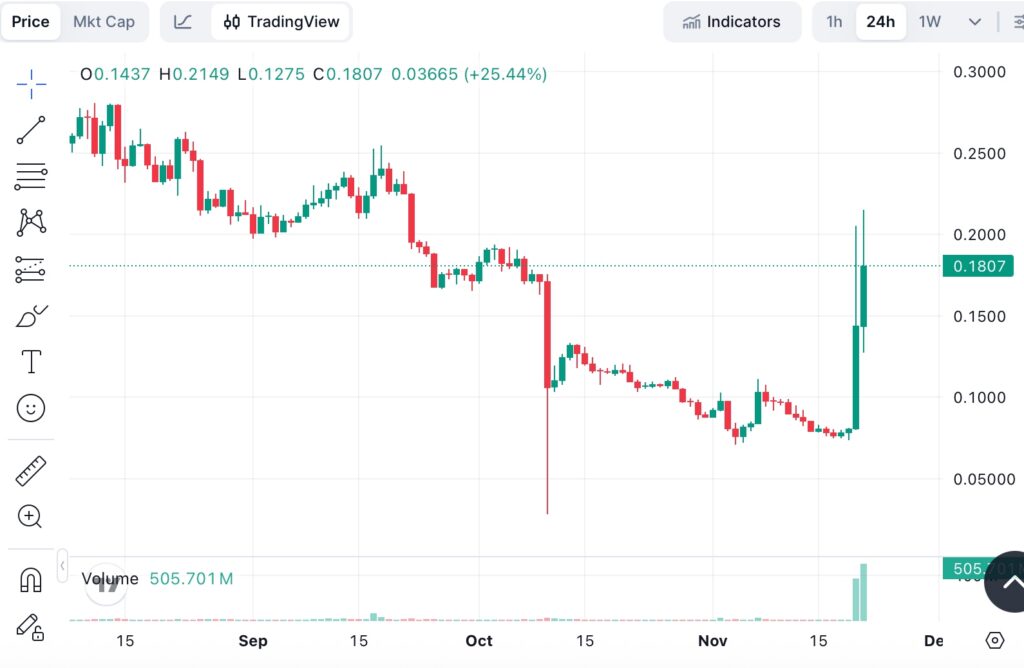 Short-term (next 7–30 days): Probably not without a breather. This vertical move on heavy speculation, combined with overbought signals and no immediate massive catalyst, sets up a classic momentum trap. Expect a sharp pullback of 20–40% soon, potentially retesting $0.10–$0.15 where healthier buying can resume. Shorts have been wrecked, but profit-taking could cascade lower temporarily.