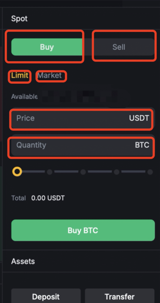 This guide provides clear, step-by-step instructions on how to place a buy or sell order on our Spot trading platform. Whether you are a new user executing your first trade or looking for a refresher, follow these simple steps to navigate the interface and complete your transactions confidently.