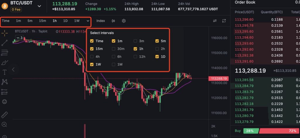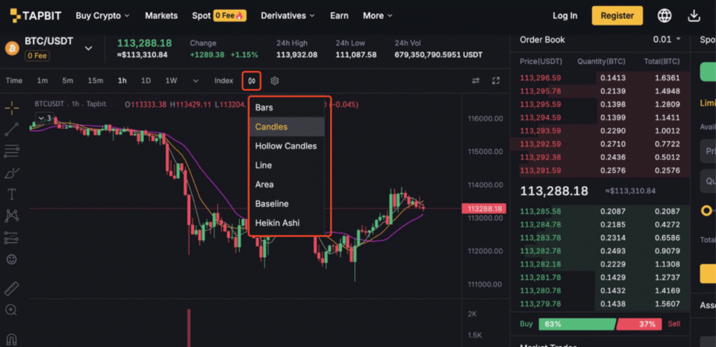 Tapbit supports multiple chart formats, each offering unique advantages: