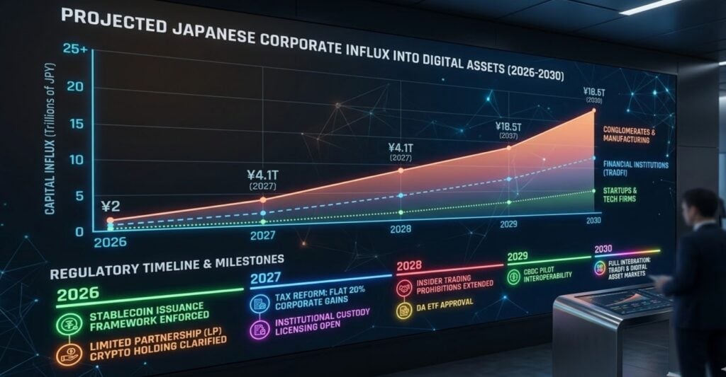 Financial authorities and legislative bodies in Japan are actively advancing compliance frameworks for digital assets. The industry consensus expects that over the next couple of years, Bitcoin and related crypto assets will be formally integrated into heavily regulated, traditional financial frameworks, opening the door for corporate and pension fund allocations.